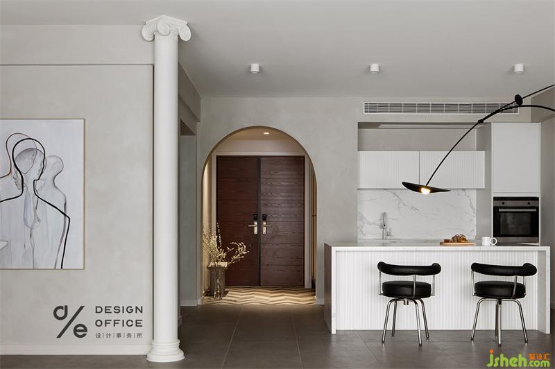 非黑即白的世界是简单的,我们想在进入家门的那一刻就把眼花缭乱的色彩通通隔绝于门外,用最简单的色调、最直白的线条来勾勒关于家的“初遇见”。
