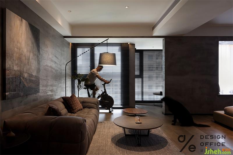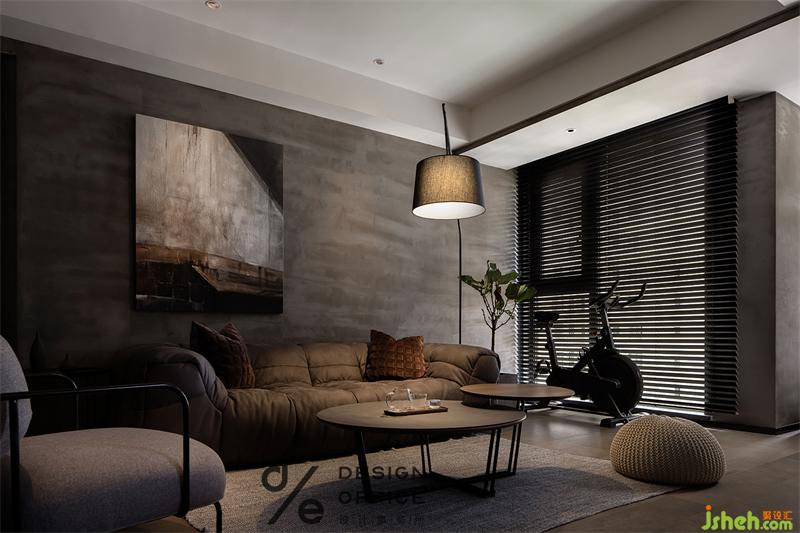 开放式的布局下,灰色调的质感与时髦随着光线在室内蔓延,从客厅到休闲区再到黑色的百叶窗,通过不同材质深与浅的变化,营造出极具层次感的视觉效果。