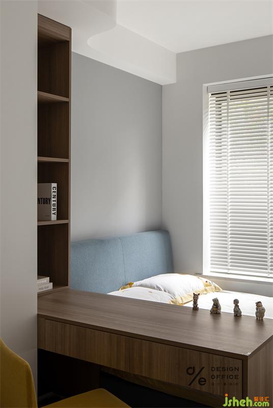 看窗外光线折射书房空间,定制的木作与整个空间相互融合。在这一方天地里,书香怡然,丢却浮躁,无论是清晨的风,还是夜晚悄悄流泻进的月光,皆充满自由慵懒的味道。
