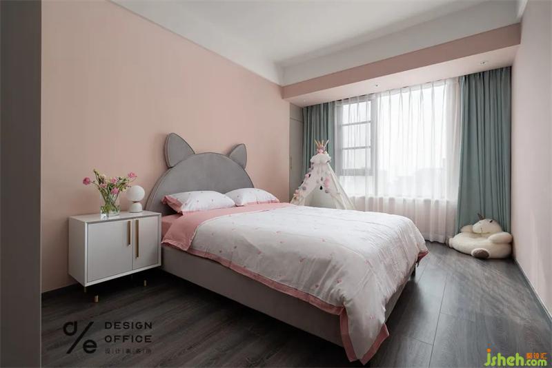 整个空间依然以粉为主色彩元素,将粉与灰的搭配做到了极致。丰富、自由、快乐、有趣,是孩子的童年精心搭配的软装,巧妙合理的布局让空间拥有充分的安全感。