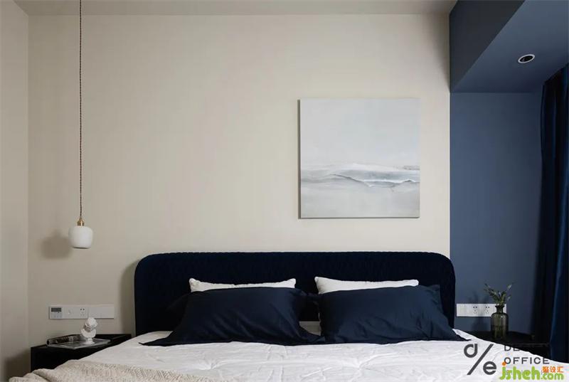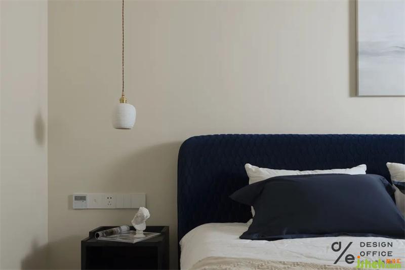 整体设计温情且日常,深与浅、明与暗,配合默契。纯色加局部撞色,嵌入灯线烘托出空间沉着笃定又不失温馨的高级气质。