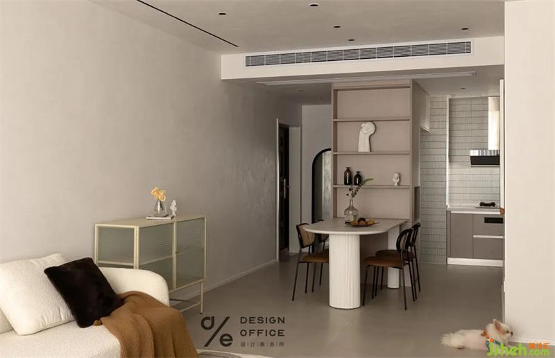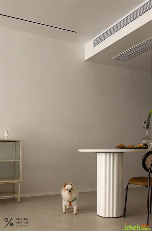 圆润的餐桌传达出相聚的指示,透过窗帘光影恣意流转;这里不仅是一家人的三餐之所,更是温柔的相聚时光。