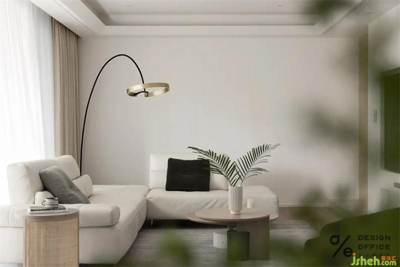在软装的摆放上,设计师刻意将沙发的方向换了位置,让整个客厅更显饱满。颜色淡雅的空间里,摆上绿植,更加自然,也更加充满了生活的烟火气。