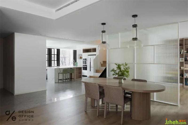 整个空间充满舒适感,温和的色彩让人感觉舒适放松,客餐厅一体更添开阔大气。一家人围坐在一起,冬日的灯光照耀着家人的脸庞,心中产生温暖的凝聚力。