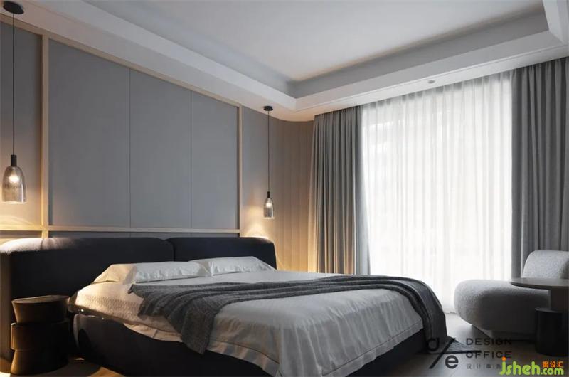 灰色晕染出舒适安逸的氛围,搭配品质家具,营造休息空间的静谧感。造型简单的床头背景,简约自然,提升空间质感。昼夜的交替,自然光与灯光的更迭,整个空间呈现出一种不同的魅力。