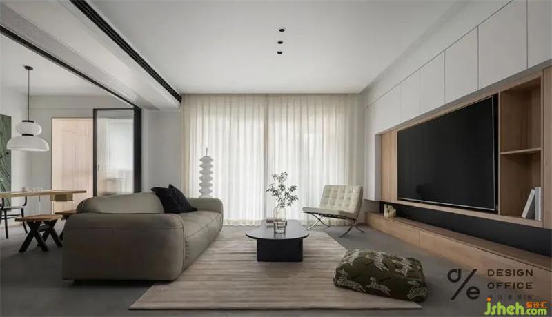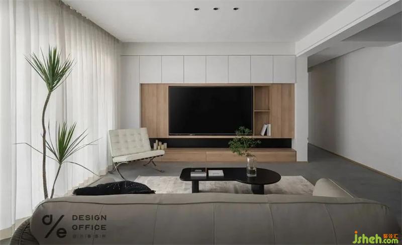 柜体式的电视墙,过道内凹式柜体处理,为业主创造了足够多的储藏空间。开放式的厨房和半开放式的多功能室,让客厅显得更加的宽敞,互动性更强。