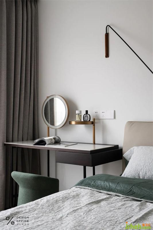女主人的梳妆台选择了与整体风格一致的样式,靠近床头摆放,既可以是梳妆台,也可以床头柜,一举多得。