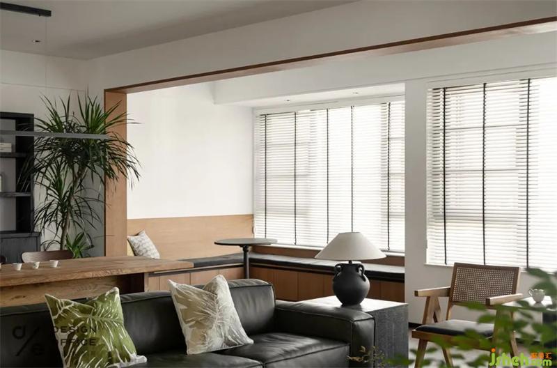 白色与木色的结合,有种特别的渲染力,卡座兼具收纳功能,原木材质多了一些自然韵味。临窗的设计拥有了绝佳的观景视角,将一年四季的变化尽收眼底。