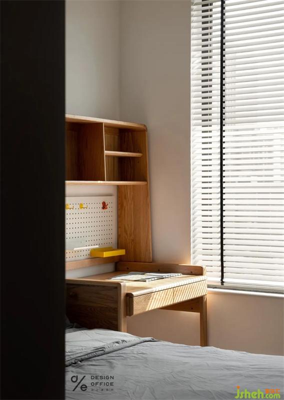 儿子房和女儿房针对两个小朋友不同的个性,在卧室布置上做了不同的尝试,以满足他们不同性格带来的不同需求。儿子房的活动空间留得更充裕一些,而女儿房的布置则更倾向成熟化一些。