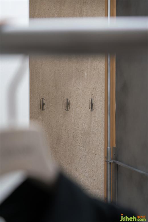 依附墙边的挂衣系统,穿插、连接、交叠是对制衣过程中穿针引线瞬间的艺术化再现,仿佛见证了一块布料到一件服装的蜕变。