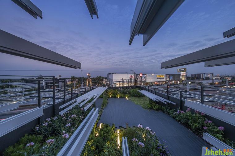 HAS design and research建筑事务所主持建筑师Jenchieh Hung与Kulthida Songkittipakdee希望MoMA不仅作为大众空间,并可替忙碌的城市居民提供休憩场所。因此,建筑延续柯叻岛上的自然景观至项目场地。在白天MoMA就像一棵蒲公英,建筑悬挑构件随风摇摆,替繁忙又紧张的拉查府卢克路增加轻柔感;到了夜晚,MoMA摇身一变成为了萤火虫,替商业气息浓厚的拉查府卢克路增加一些生态感与松弛性。