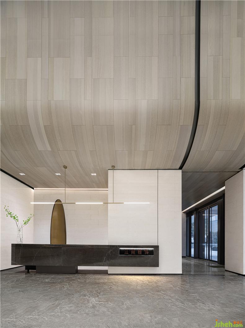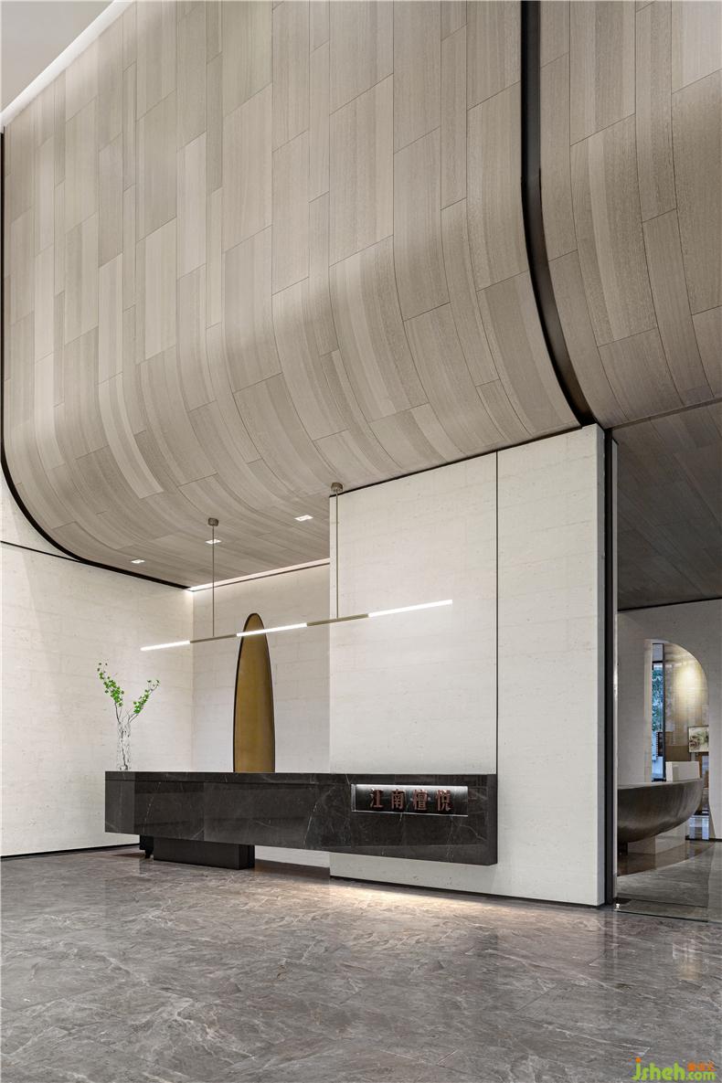 1.前台别致的造型宛如一艘即将扬帆起航的船,驶在绵延不绝的时代长河,空灵、清远而意蕴悠长。