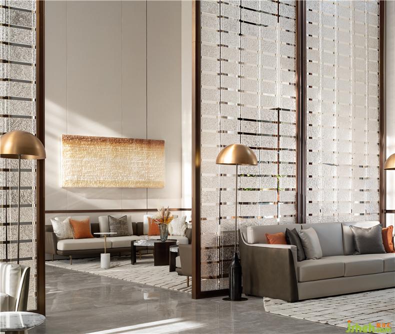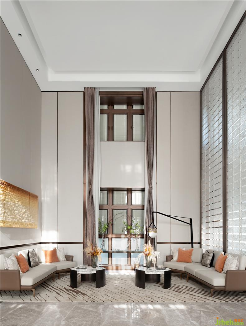 我们认为,对自然与人文的追问,亦是对时间刻度的一种探索。在签约区,设计透过对自然地缘与人文情致的解构、应用,营建空间的大轮廓与小细节,环环相扣的几何灯饰、鹅黄渐变的艺术挂饰、装修设计极具秋色诗学的精致花艺,诠释着空间的美学尺度。当阳光漫入空间,光影斑驳,有时令空间的一切界限分明,偶尔又界限模糊,诗意地与自然呼应共生
