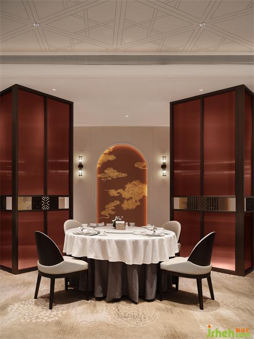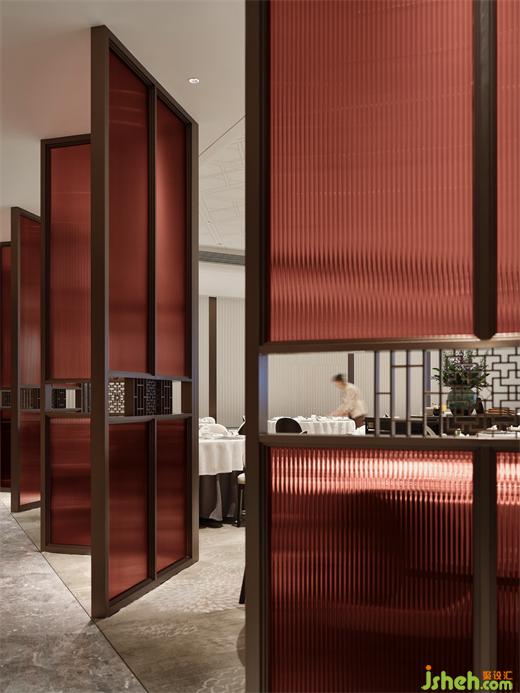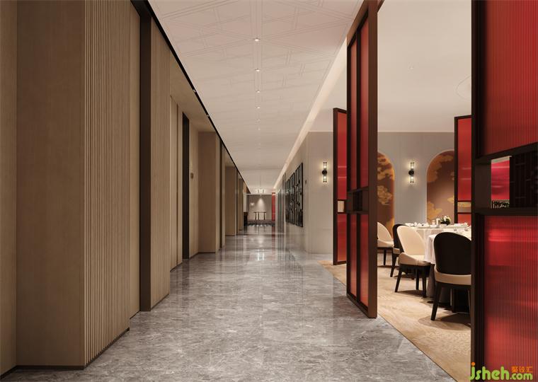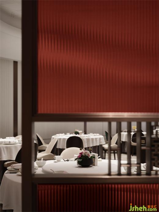 空间分为迎宾区的入口大堂、一条带有叙情故事的公区长廊走道连接着公共用餐区和8间包房,另一条VIP走道为5间包房,附有音控室、置衣间、红酒柜更配有男卫与女卫及无障碍卫生间。