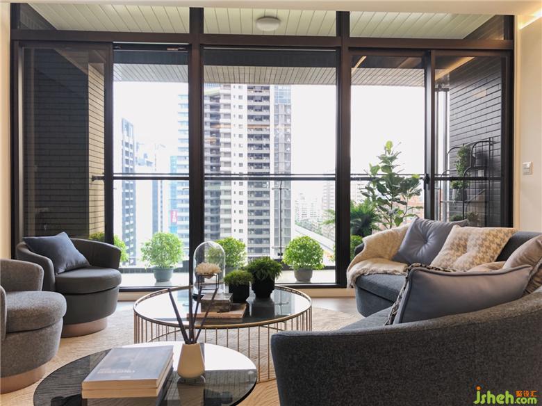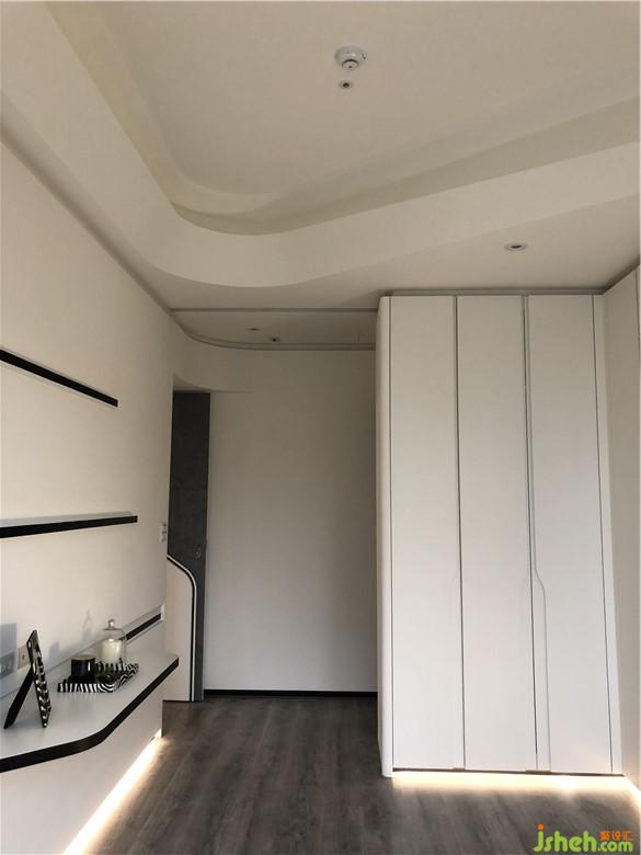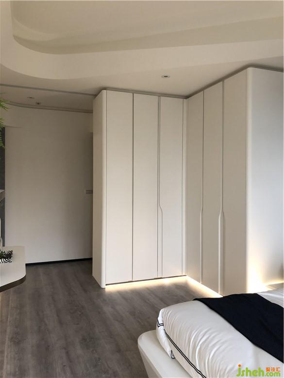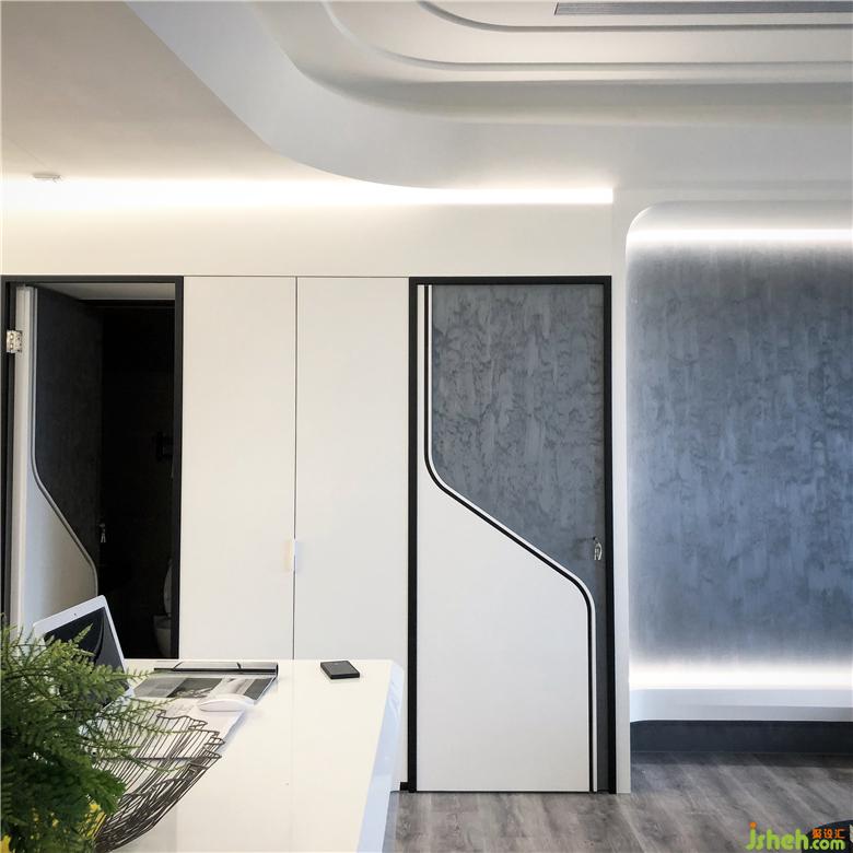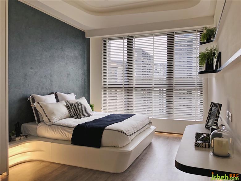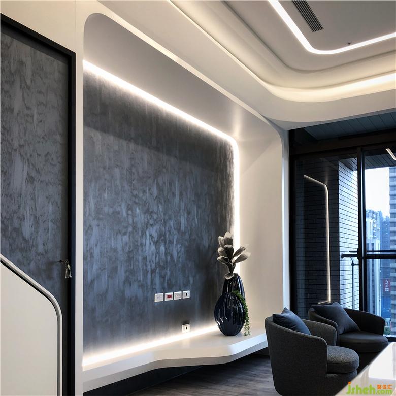 此案創造對於未來的想像,利用線性串連空間情感,打破現有限制。视觉上的错觉往往可以产生比实际面积感官更大的效果。住宅普遍高度不高,直角也多,导致即使面积大卻仍感受空間小的结果。设计手法采用圆弧形的修边来制造没有死角的视野。前后错位的天花造型在相对死板的空间产生了动感与流畅性。不拘泥现状的设计适度的隐藏了过多的管线与结构而达成空间的洁净与单纯。深蓝色艺术漆赋予了整体空间一种时尚感。空间里面虽然开放,区域性仍然存在。装修公司