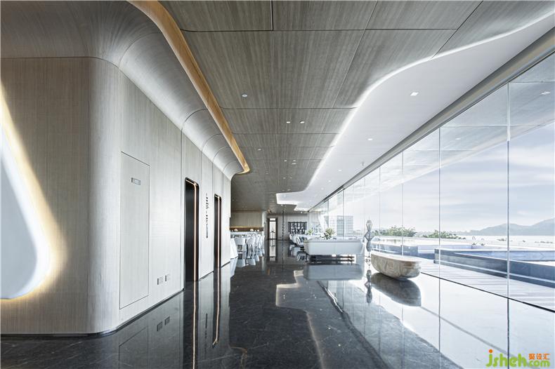 游轮弧形元素做为整个空间的设计表达形式之一,更便于我们由内向外展开诸如对未来、生命和平衡等语汇的思考,用表象的形态、趋势给人传递无限的想象。就像是浅谈交流中游轮在海面上留下一串前进的印记,装修设计如同平衡序开的集合组成元素,形成有趣的轨道