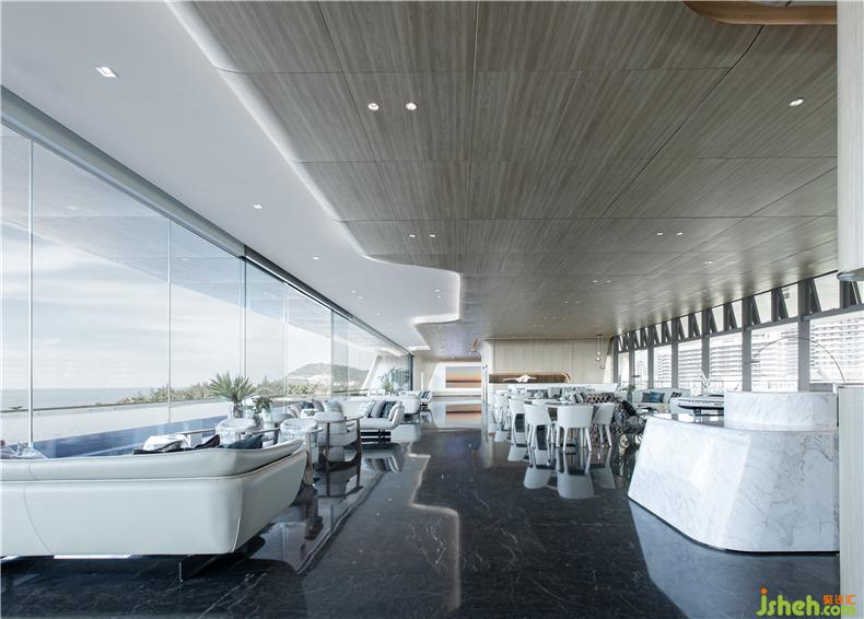 平静与美、自然与艺术的结合,带来的多重感官体验在这艘航行的游轮上一一呈现,装修设计聆听游轮航行过的水流声,所有的感官仿佛置身于在大海中,空间体验感与建筑的空间形态巧妙结合。