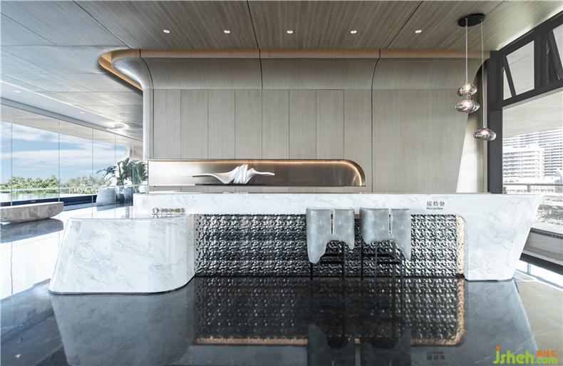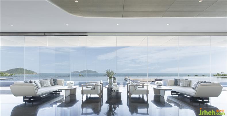 SSID将天然的地理优势与万宁独特的文化属性结合,将游轮的元素巧妙融合到室内环境中,在有限的空间内重组最佳动线设计。突破传统售楼处固有印象,在设计中加以叙事的手法,以游轮概念为起点,将建筑、景观及室内设计三者融为一体。