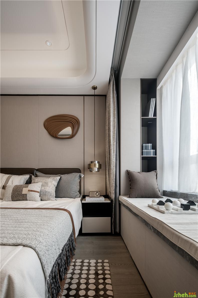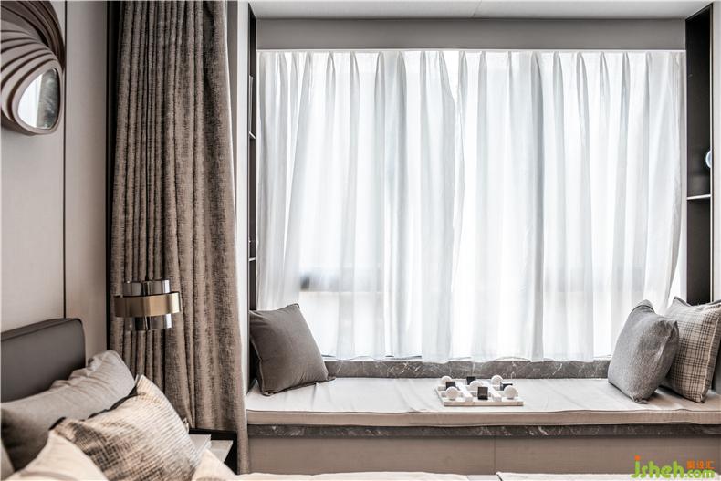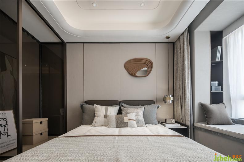 像是沉入进空间的感觉,如水一样平静、自由,又具生活品质,样板房设计大大的飘窗带来丰富的视觉享受,在最好的视野之上,将阳光请进来,,在大面积的留白上,增加了一抹暖调,营造出温馨又舒适的生活感