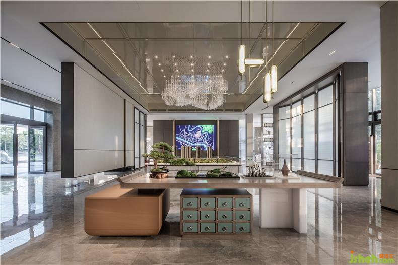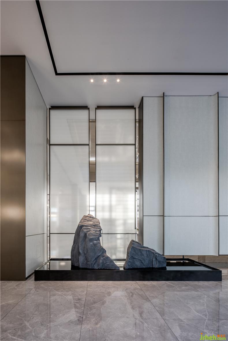 “山自在,水如来”,雕塑抛光切割模压玻璃和岩板材料来体现我们与世界的关系,从而有可能掌握我们的内在性,突出实现所穿过而看不到的巨大整体,从而使自己和自己之间存在的事物变得简单而直接。装修设计门厅用素色的色调和干净利落的线条,表现一种由古典美和现代美相互融合的温柔力量,净化着每个所到之人的浮躁心灵