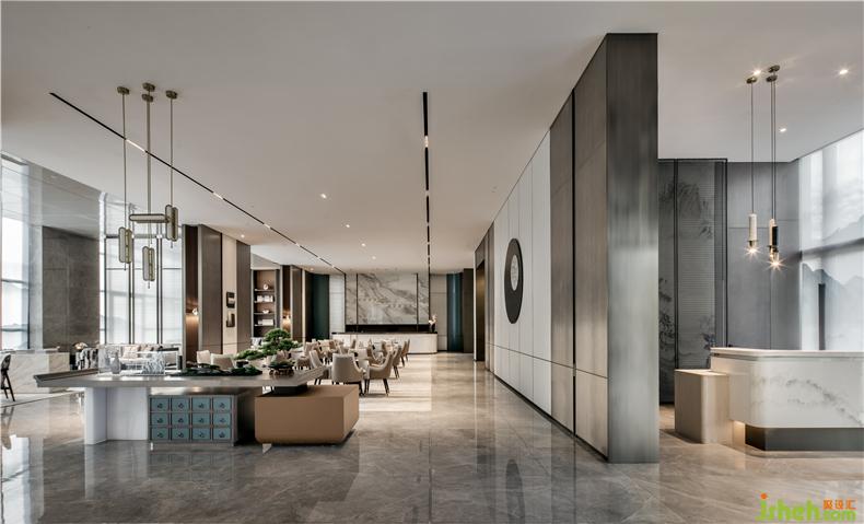 水墨画造型的家具搭配金属框架,与代表岭南意蕴的色彩和皮革碰撞,装修设计生出别具一格的沉稳舒适感。每一扇屏风和展示架都是精心设置,不同的视角下,原本相离的空间巧妙的交叠相汇,更具层次感,半围合半开放的设计,考虑到洽谈区的私密性需求,同时满足了一部分的空间通透性