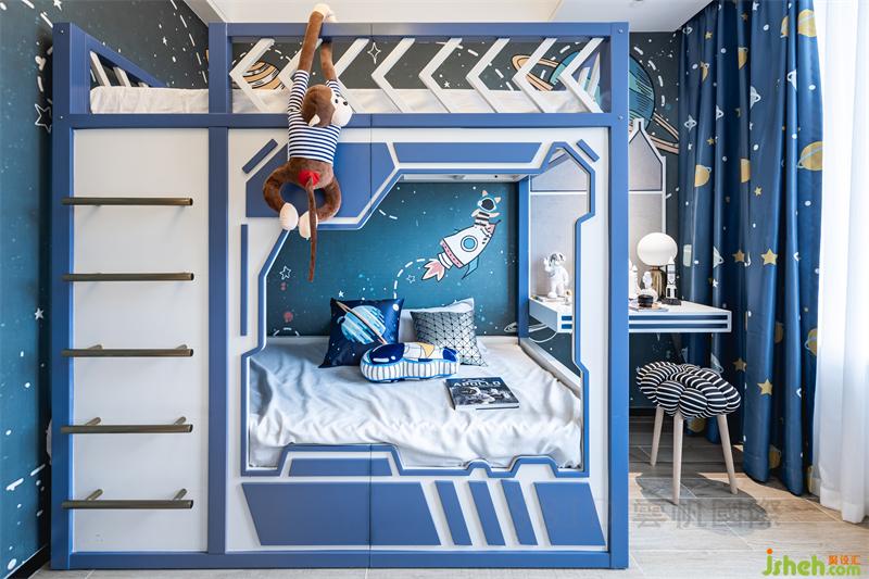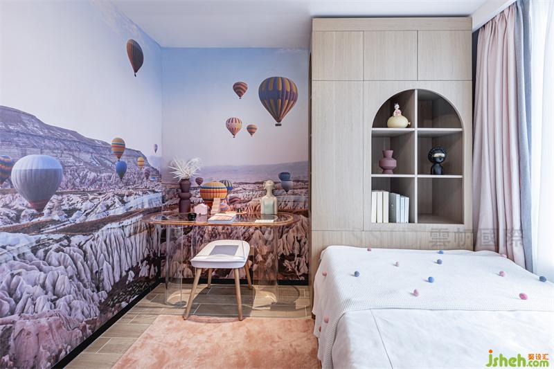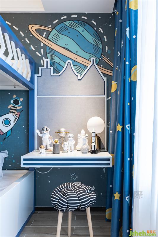 儿童房以热气球、海洋、太空主题形式,在孩子幼年时期身体各方面迅速发育阶段,这个阶段孩子对周围充满极大的兴趣,比较好动。艳丽的色彩能够激起孩子的活力,使孩子产生兴奋,而且强烈的色彩也能够刺激孩子的视觉神经,有利于孩子眼睛视力发育。