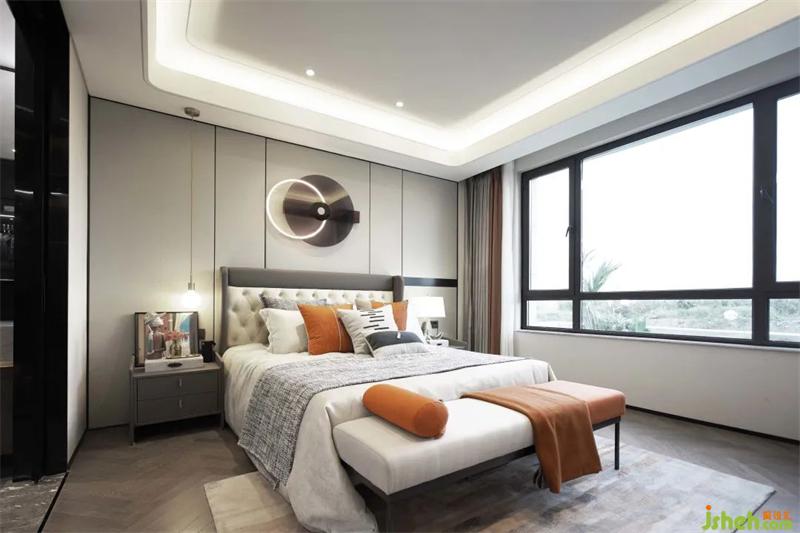 The background wall decorative cabinet is low-key, light and luxurious, and the natural texture of dark wood grain highlights the texture in details. Large area of French windows, also quietly, extended the entire space.