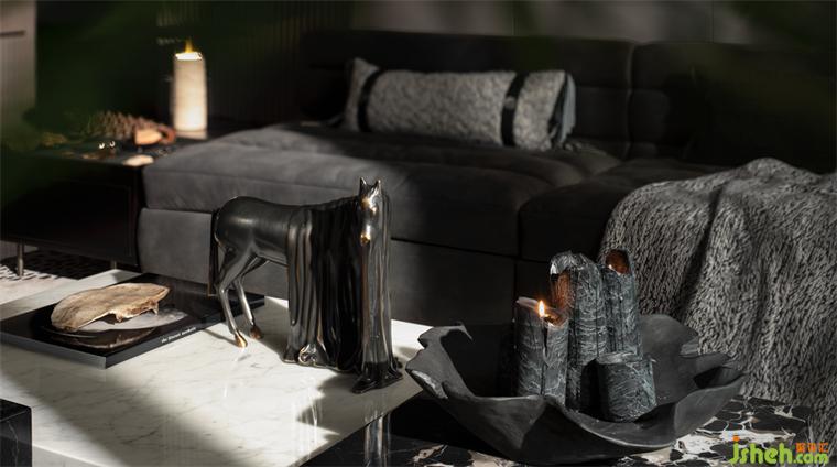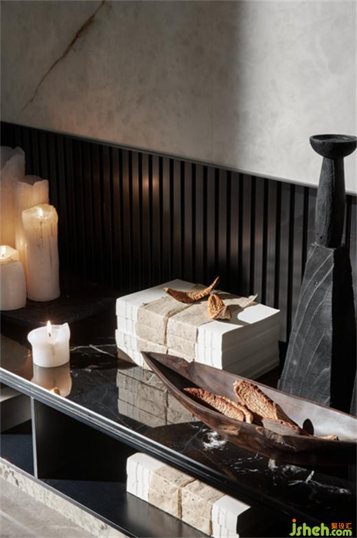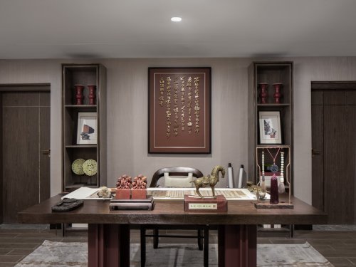 马、甲骨文、石雕等东方文化饰物让我们仿佛看到自然之物在历经自然生命凋零后又超脱生命通过艺术化的表现形式再现,样板房设计此刻物我无界,跨越千年的东方文化艺术共鸣由此生发。