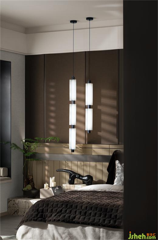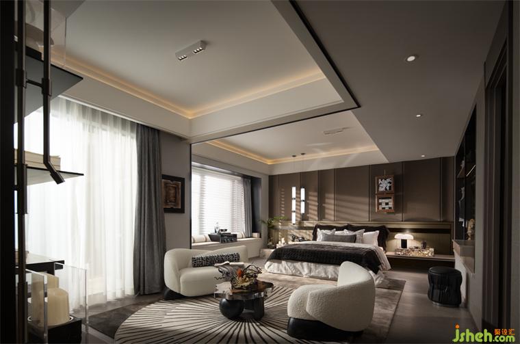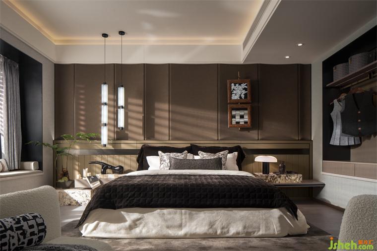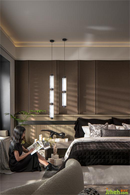 大空间主卧是该项目的一大亮点,入室即可感受此空间带来的非凡气质,样板房设计设计师在主卧着笔勾勒东方典雅的气质,在东方的雅和当代的艺术之间达成微妙的平衡。