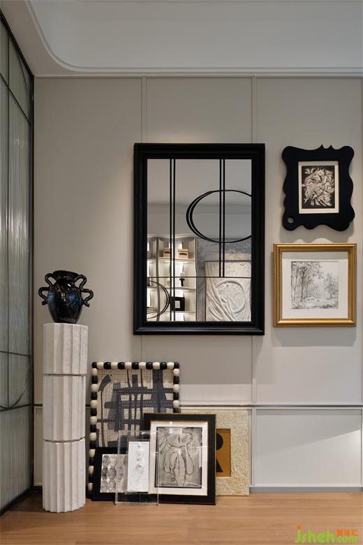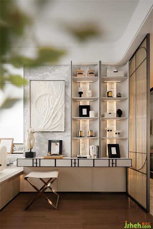 白色作为书房空间的主基调,营造清新宁静的氛围,浮雕画如同轻柔的呼吸,赋予了空间灵魂,几何线条交织,勾勒出优雅韵味。