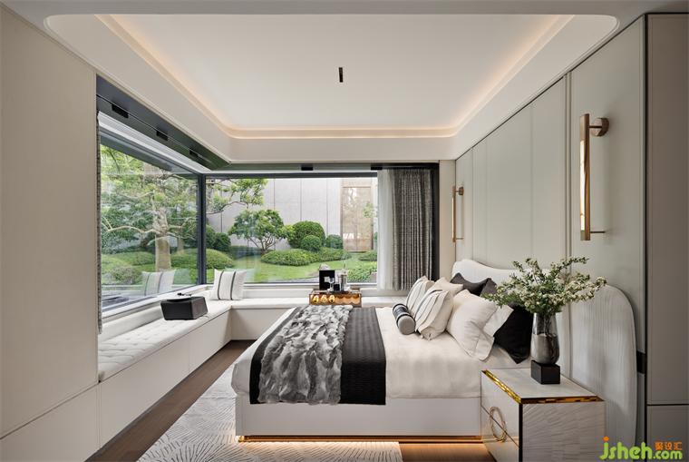 白花清雅,绿色的生机令空间色彩更加鲜活,样板间设计在黑白线条里重新定义精致感。