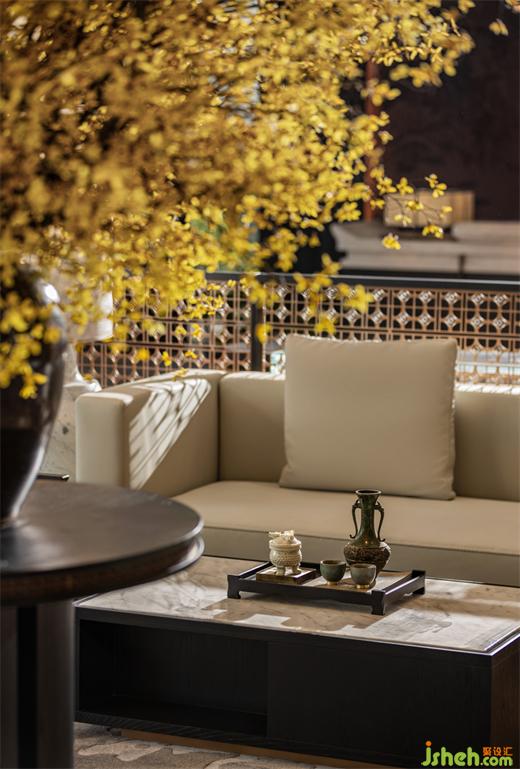 红色与国人纠缠了数千年,既攀上了王者的衣裳,也沾染了女儿的香腮,如今它已成为我们心头的信仰。作为茶室的主色调,与青绿山水画交相辉映,展现出一种深厚而优雅的底蕴。