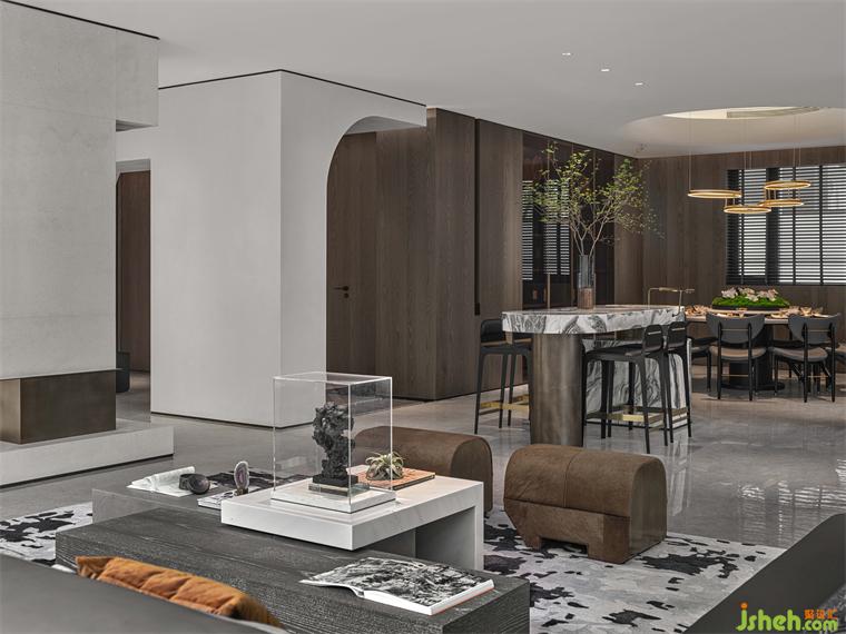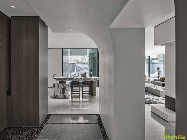 艺术与自然,都是生活中不可缺少的一部分。将东方中游园的意境与西方建筑的雕塑感结合,别墅样板房设计利用对景的关系,打造出空间的功能层级和动线,行于空间中,却好像是游于家和自然间。