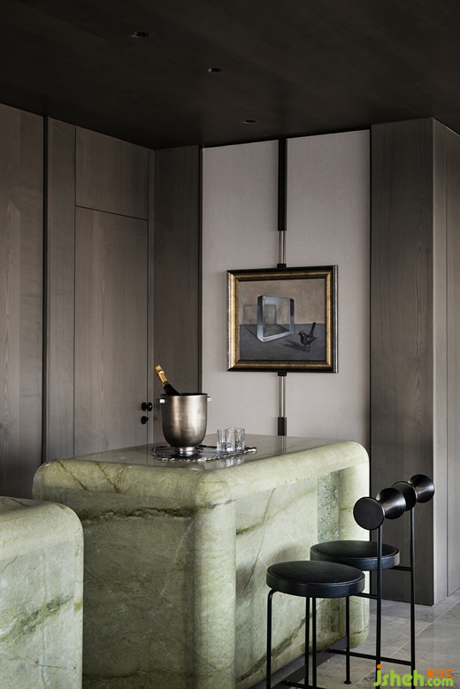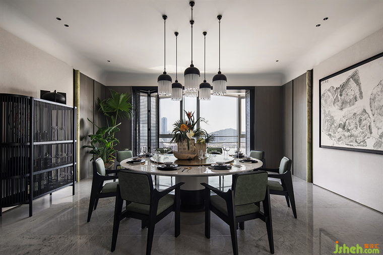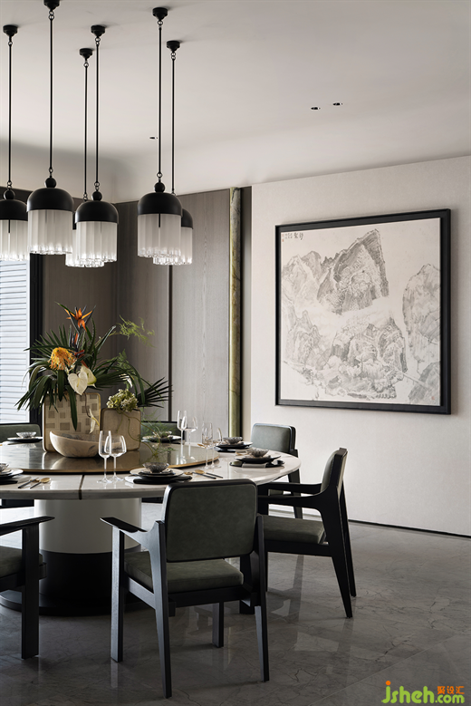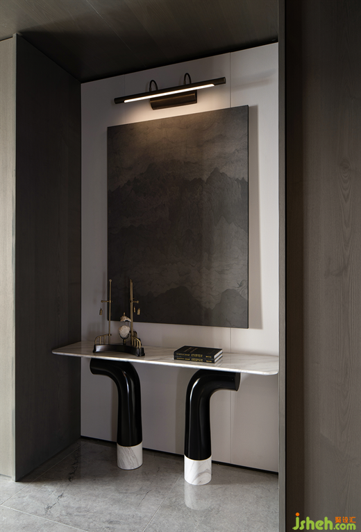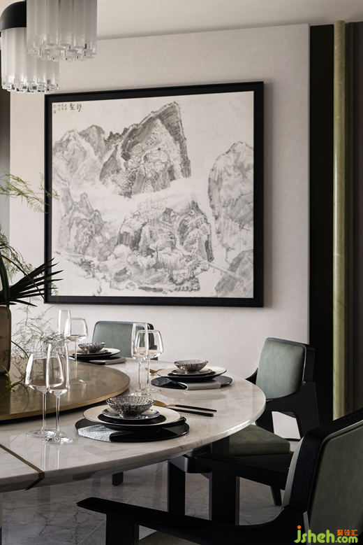 设计元素不应该被封闭或受到限制,它们应该以坚定不移的归属感,迎接并唤醒人的灵魂。在WSD 的设计中,多元探索和无限变化随处可见,而开创的设计更体现在彷佛玉石翠绿般的石材用于垭口之中,岭南建筑的镬耳元素幻化成装饰画,样板间设计突破原有的边界,用新的形态讲述新的故事。