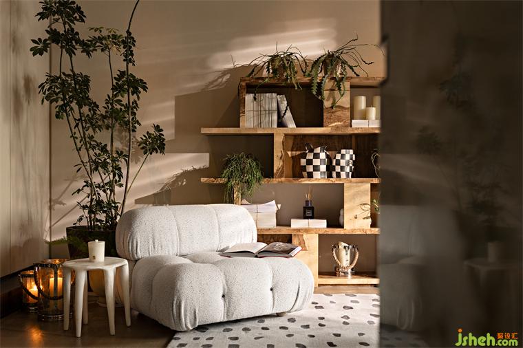 打破艺术与居所的边界,这里犹如一个充满生活气息的家居艺术展厅。BAXTER的粉色和黑色大理石茶几碰撞出冲突却艺术的魅力;KARTELL的白色亮面单椅极具个性,在以深色系为主的空间中它成为了跳脱于空间外的角色;稳重而柔软的OLIVER GUSTAV单人沙发,展示空间设计让人畅想出温暖的场景——家人可亲,围炉夜读。