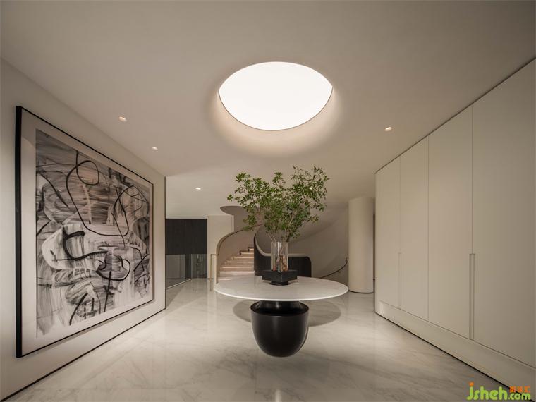 原来的入户厅设计成了攀爬墙,童趣有余,却无法经历时间的推敲,也无法彰显大宅的气度。The original entrance hall was designed as a climbing wall, which was full of childishness, but could not stand the test of time, nor show the grandeur of the house.
