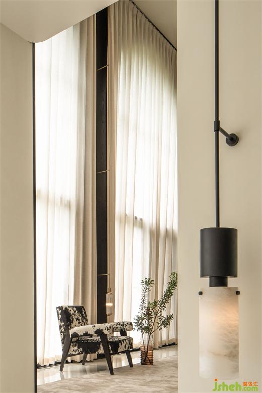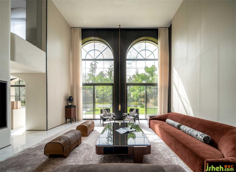 别墅设计客厅大面的落地窗,阳光毫不客气地跑向室内,马毛单椅和羊毛地毯的温度渐渐攀升,沿着肌肤将温暖传递,直至包裹住人的身体。当然,风也是毫不意外地,跟人抱个满怀。