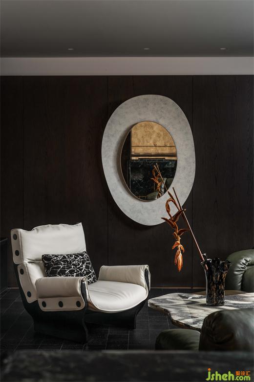 红姐的个人喜好之一是爱酒,生活习惯也是想可以随时品上一杯红酒,因此在做设计的时候,每一层生活空间都会考虑这一生活需求。无论是吧台还是影音室,亦或是休闲室:都有这么一寸天地满足这饮酒乐事。