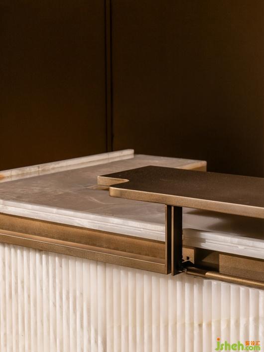 同时,运用金色、铜色等金属色点缀, 增添了空间的华丽质感,会所设计既保留了复古风格的典雅,又融入了现代元素的简洁,在历史的厚度中轻触当代时髦艺术。
