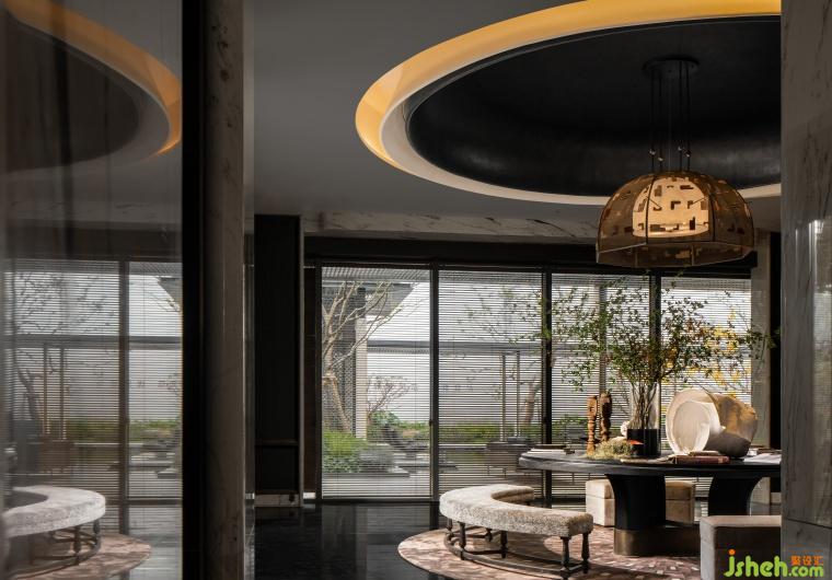 重要的不是流行的趋势,而是生活本身的体验。宋代风格的屏风与民国风的艺术壁灯相得益彰,以优雅沉稳的暖调着色,将黑金糅合置入,透过复古式样强调沉稳质感。