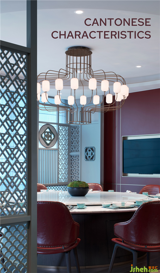 中餐厅接待台以盆景清供、霜白影壁、墨色石材,原木质感墙面……写意岭南建筑温润淡雅之美。薄蓝格珊、葱绿陶瓷满州窗,与古典枣红墙面,演绎当代广府特色。