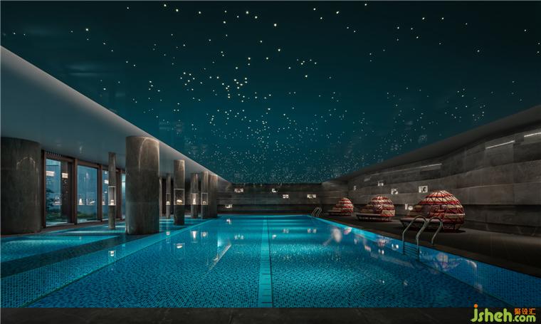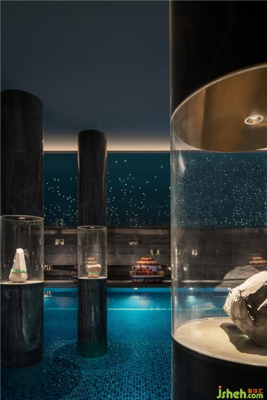 就连泳池,也悬垂银河天象,珍藏着不同地质年代的矿物标本。南京园博园英迪格酒店设计层层堆叠的地幔环绕,如置身幽深矿谷。星光倾泻,凿空这片深邃的昏暗。