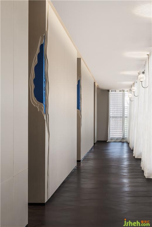 当大地侧了个身,将山河走向、地质肌理坦露于墙,送来城市生长变迁的信息,你会不自觉沉迷静思。常规的宴会电梯厅前,YANG别出心裁引入地形图谱,激发惊喜。