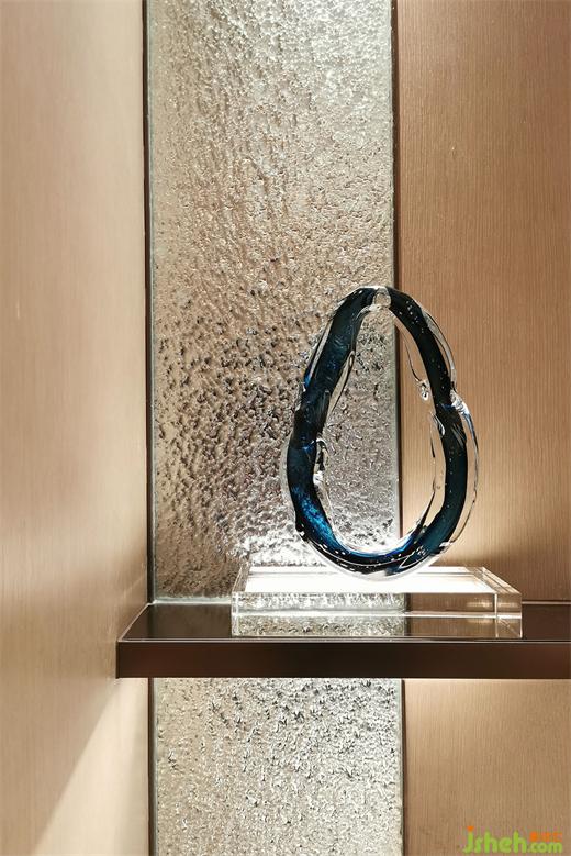 原木色的温润气质柔和了空间,墻面艺术挂饰以抽象极简的现代手法再现「海浪」和「海滩」,形成海与沙、动与静、平与凸的强烈对比,让宾客在静谧的空间氛围裏「享.静夜」。