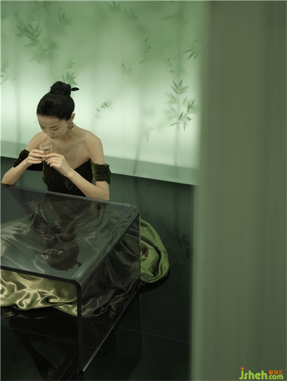 吧台运用岩板作为主要材料,和绿色竹影玻璃墙面曼妙结合,让空间更富质感和自然变化,增添东方韵味。安宁、祥和,用最质朴的自然映影,艾洛设计去营造饱满的生活场景,人与自然相互沁润,心境也变得辽阔丰盈。