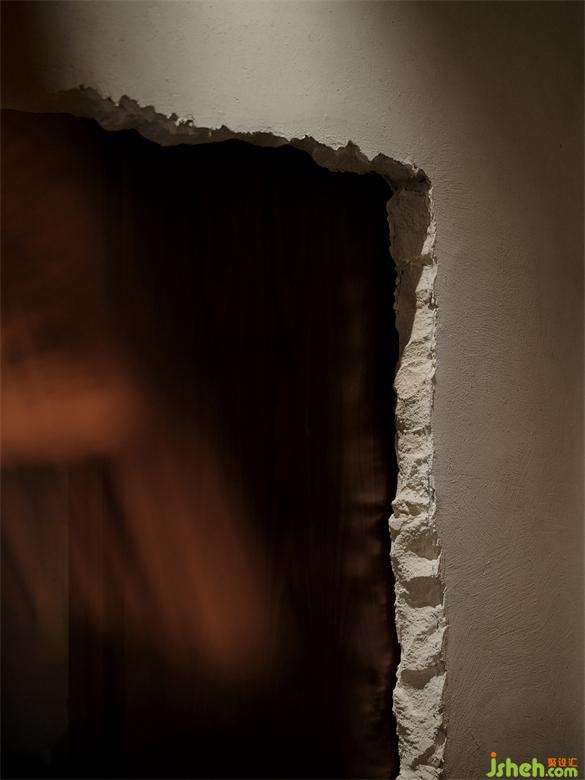 被锤子破凿开的包间入口呈现出斑驳的质感,手指拂过切面可感触其凹凸不平纹理。