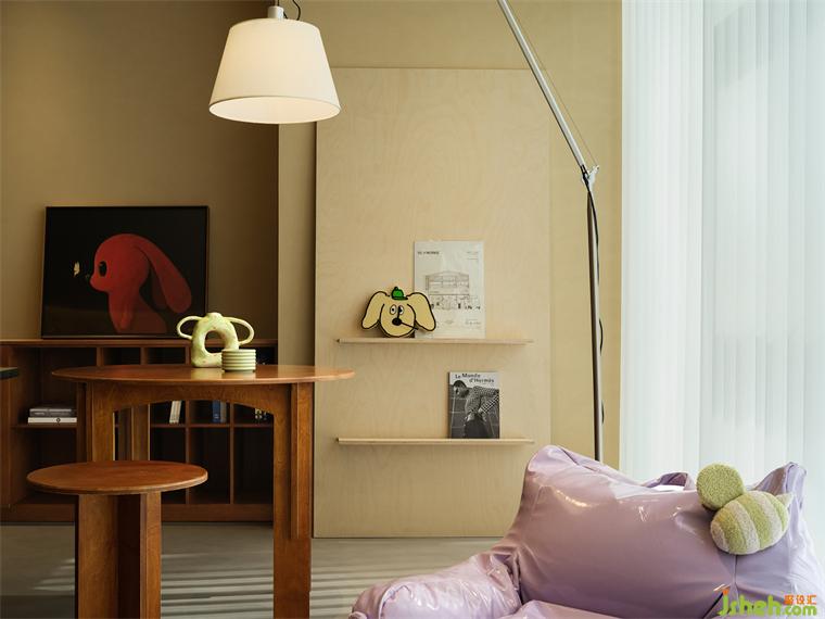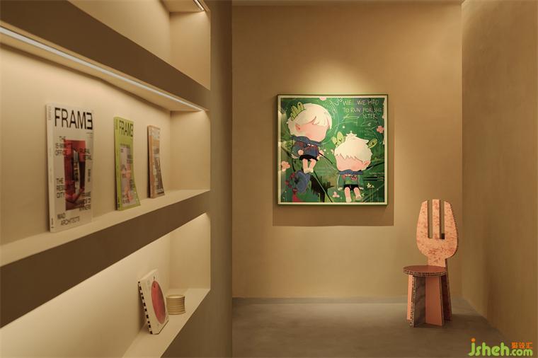 从入口转入,线性的空间引导,我们跃入一个狭小但被柔和色彩包围的空间,内心好像有一种想一直往前的心情,去探寻下一个路口的奇遇。办公室设计端景的绿色挂画与温柔的色彩结合,一些自然宁静的体验在此处展开,欢迎来到“AURORA的梦游仙境”!