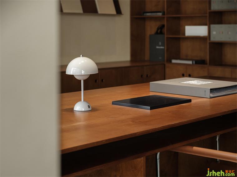 在长廊的尽头,豁然开朗的天光让眼前的空间展现无疑。木质的温柔交织金属的凌厉,引导出开放空间中的包容与多元,新鲜的思绪肆意飘游,或倚靠于桌角,或仰躺于天花。