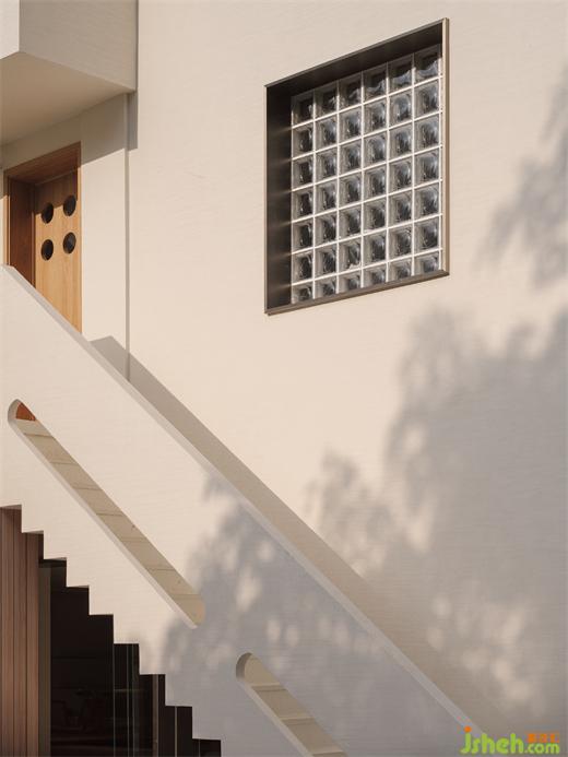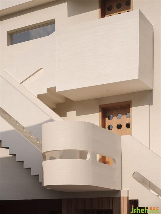 待到日光划过正午的脊背,缓缓爬上云层似的阶梯,暖白的微水泥抹面捕捉光走过的声音,在凹凸与平滑间游戏,停顿在环抱的休憩处低语,细密的流露出时间的声息。