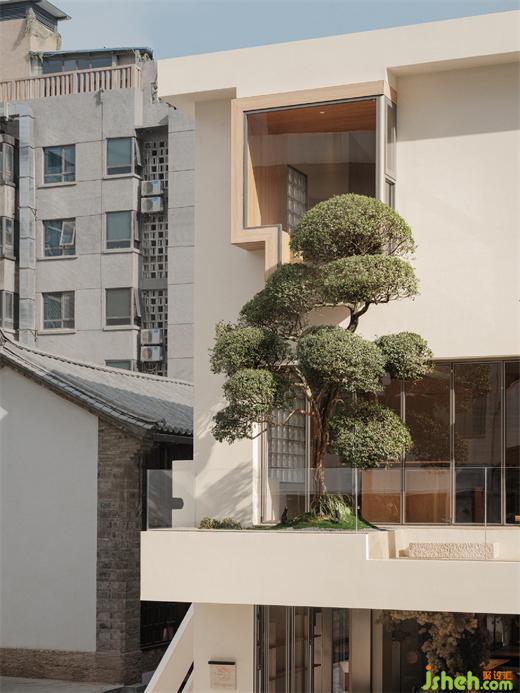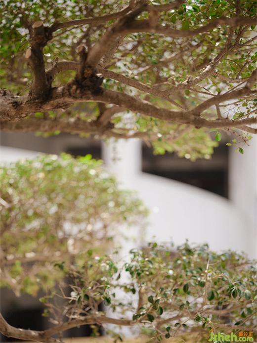 穿过工作区,一树绿意倾泻而下,设计师保留了原址的绿植,将西侧的植栽移置露台处,营造出工作中的‘自然时刻’,让人沉静愉悦,心生安然。
